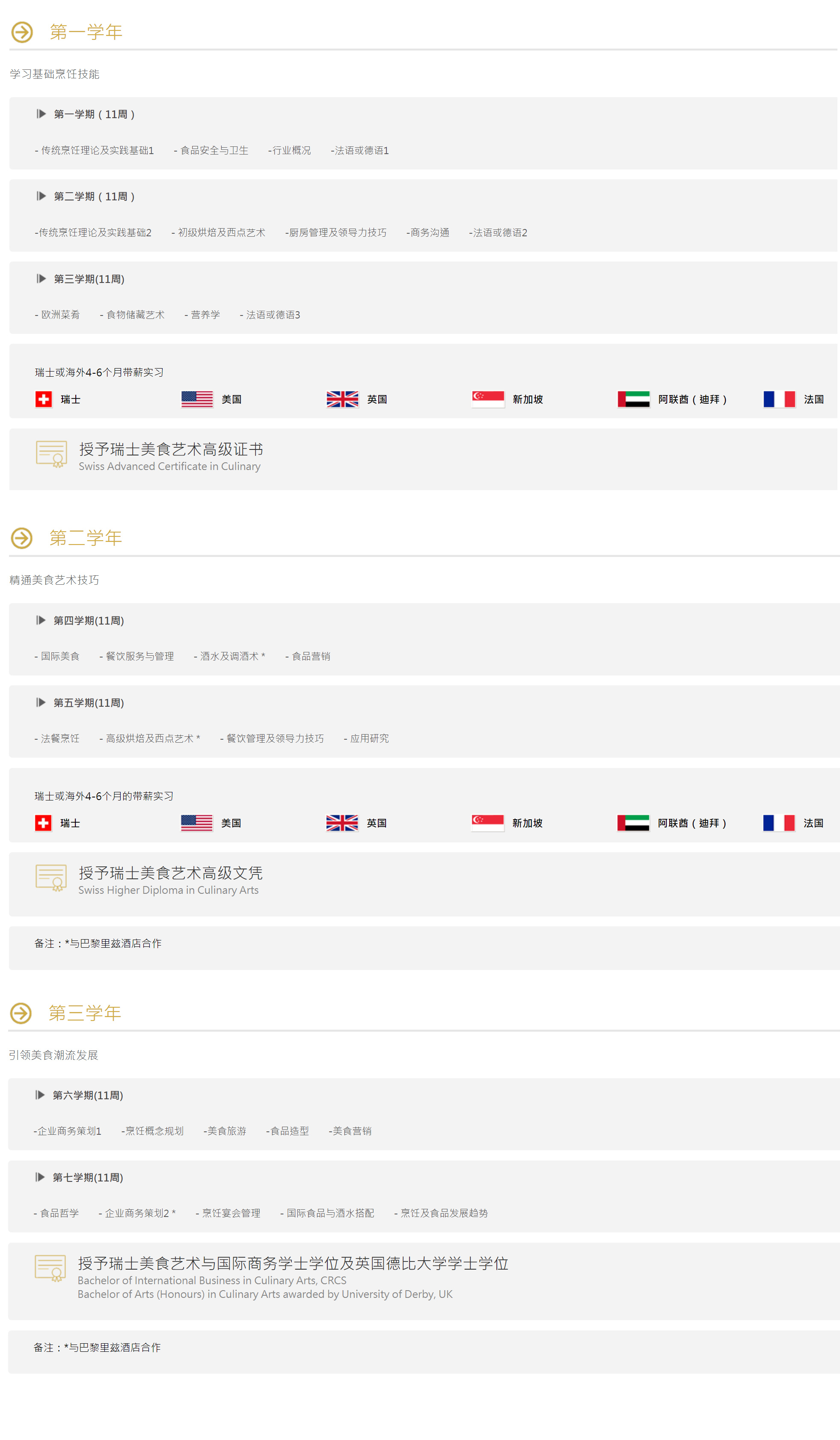 值得一提的,CAA除了本科课程以外,还提供了一年制的文凭课程,包含西餐西点、甜点与巧克力、素食烹饪艺术等专业。有意向烹饪技术路线发展的人士不妨了解一下。