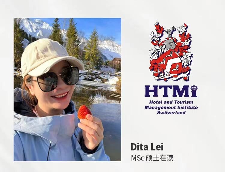 嗨~我是Dita,来自于广东。大学毕业之后,我在国内的主题度假区工作了十年之久,负责项目前期工作。为了自我提升和未来职业规划的发展,我放弃了国内的职位,出国继续深造。最终,我选择了在Hospitality行业最富盛名的瑞士去学习。