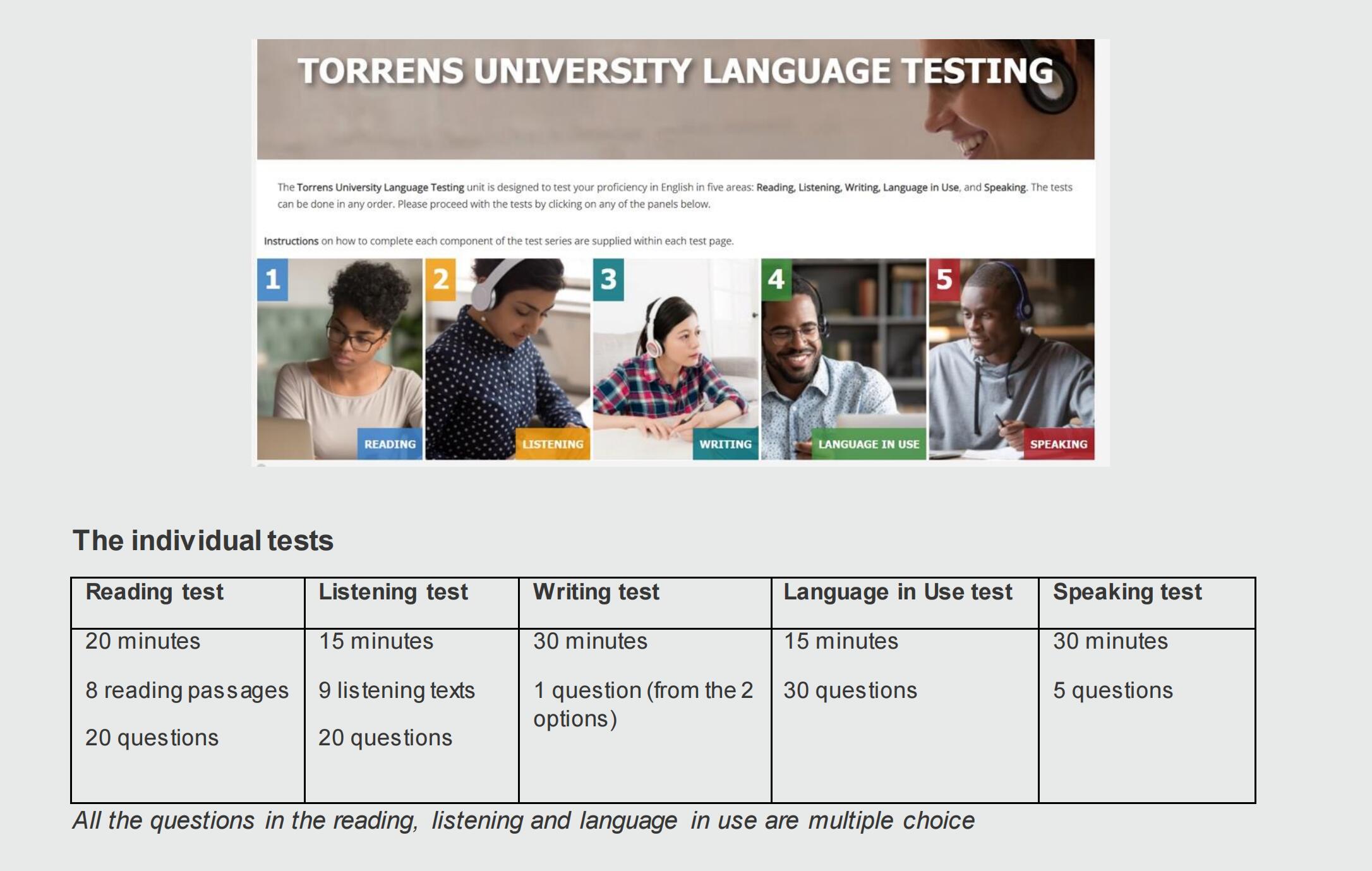 阅读、听力和语言应用皆为选择题。