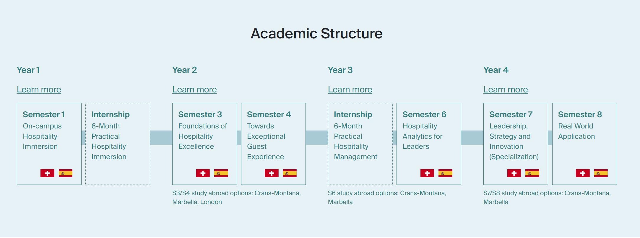 一直以来理诺士酒店管理学院和其姐妹学校格里昂酒店管理学院都采用3.5年制的本科。而从2024年开始,两校的本科时长都将增加半年。换而言之,理诺士的国际酒店管理本科(Bachelor of Business Administration in Global Hospitality Management)将变成四年制。