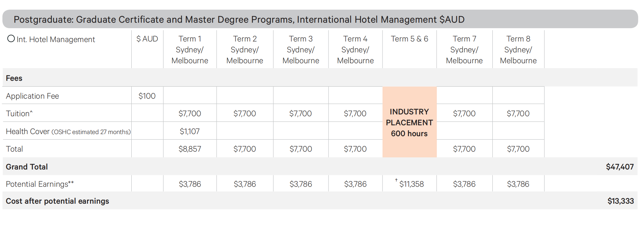 如上图所示,蓝山研究生阶段的学费共47,307澳元。