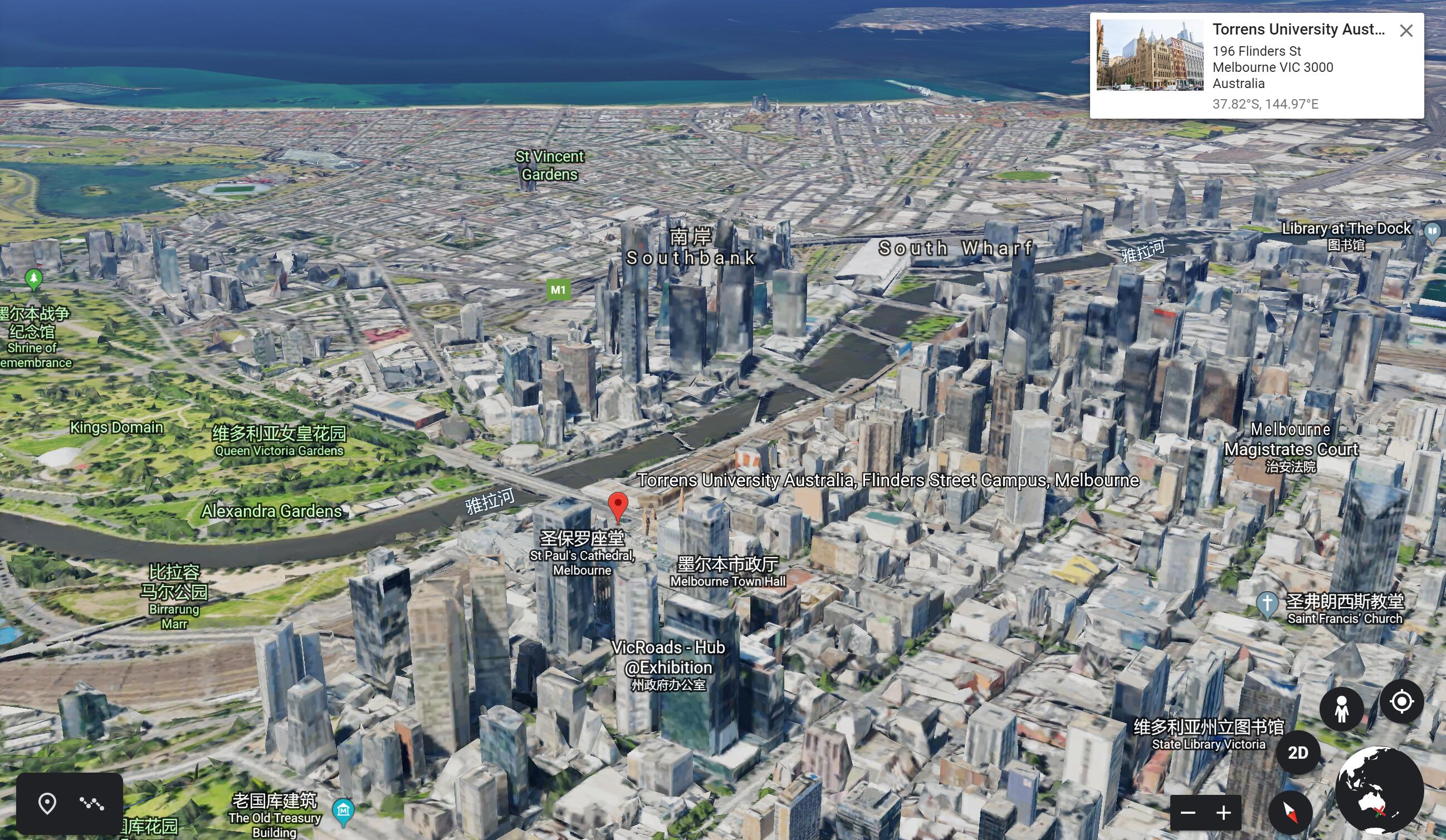 墨尔本校区也位于墨尔本市最繁华的地段,从上图可以看到,学校不远处就是墨尔本市政厅(熟悉的配方熟悉的味道),各种高层建筑围绕其中,但是不缺乏绿地公园和海湾。跟悉尼Town Hall校区相比,墨尔本校区周边的建筑密度没那么高,但是墨尔本的就业和实习机会毫不逊色与悉尼。
