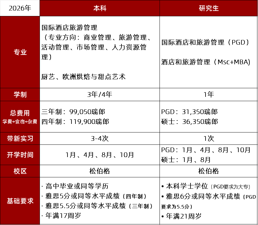 + 学校与40个国家和地区的酒店集团保持合作关系