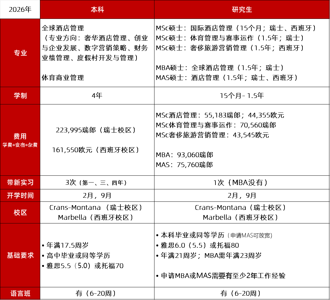 + 成立于1954年,瑞士历史最悠久的酒店管理大学之一
