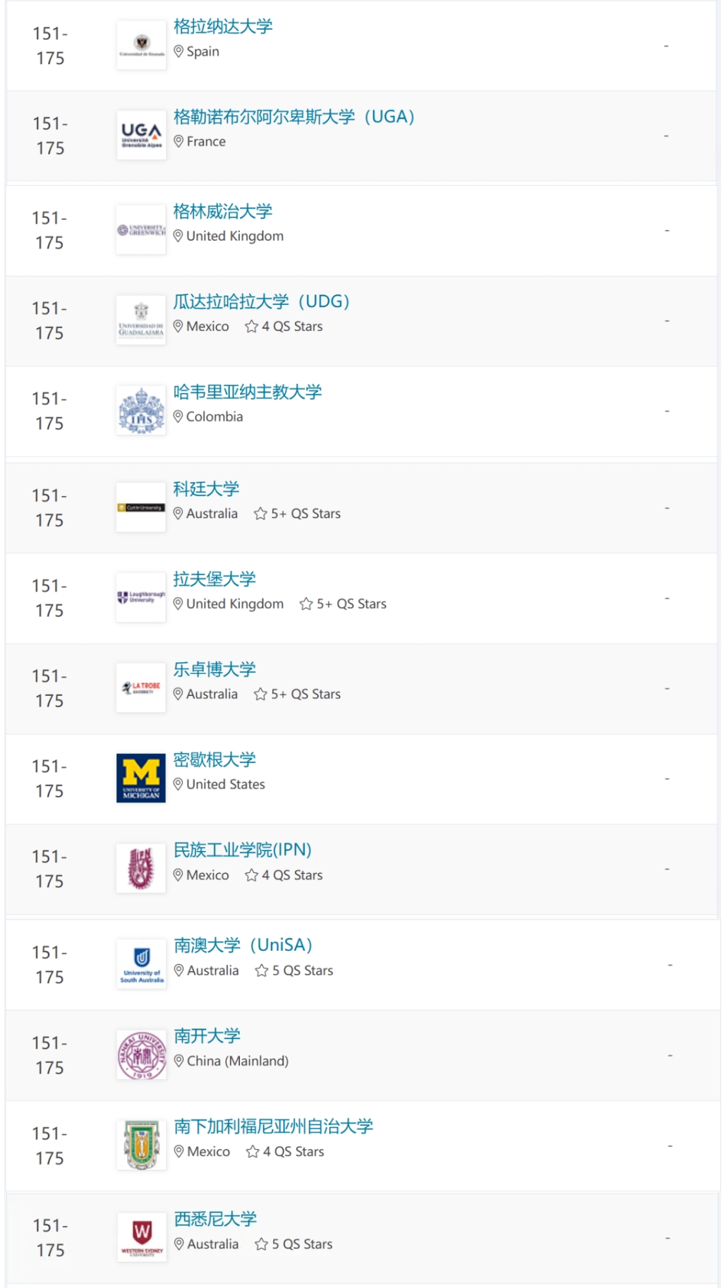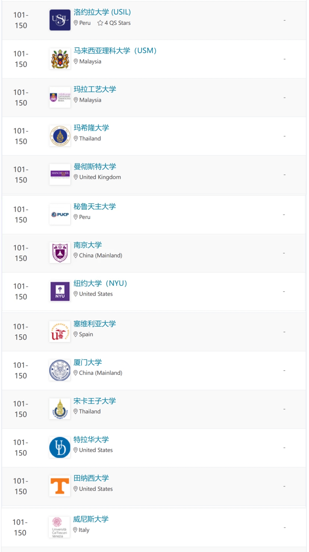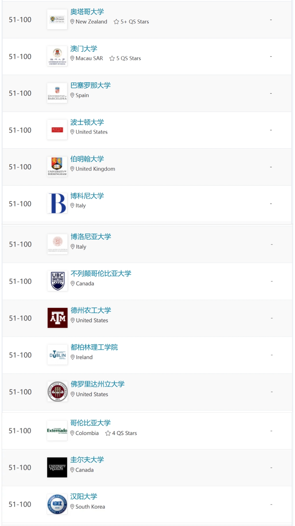 新西兰:5所(奥克兰大学,第51-100位)
