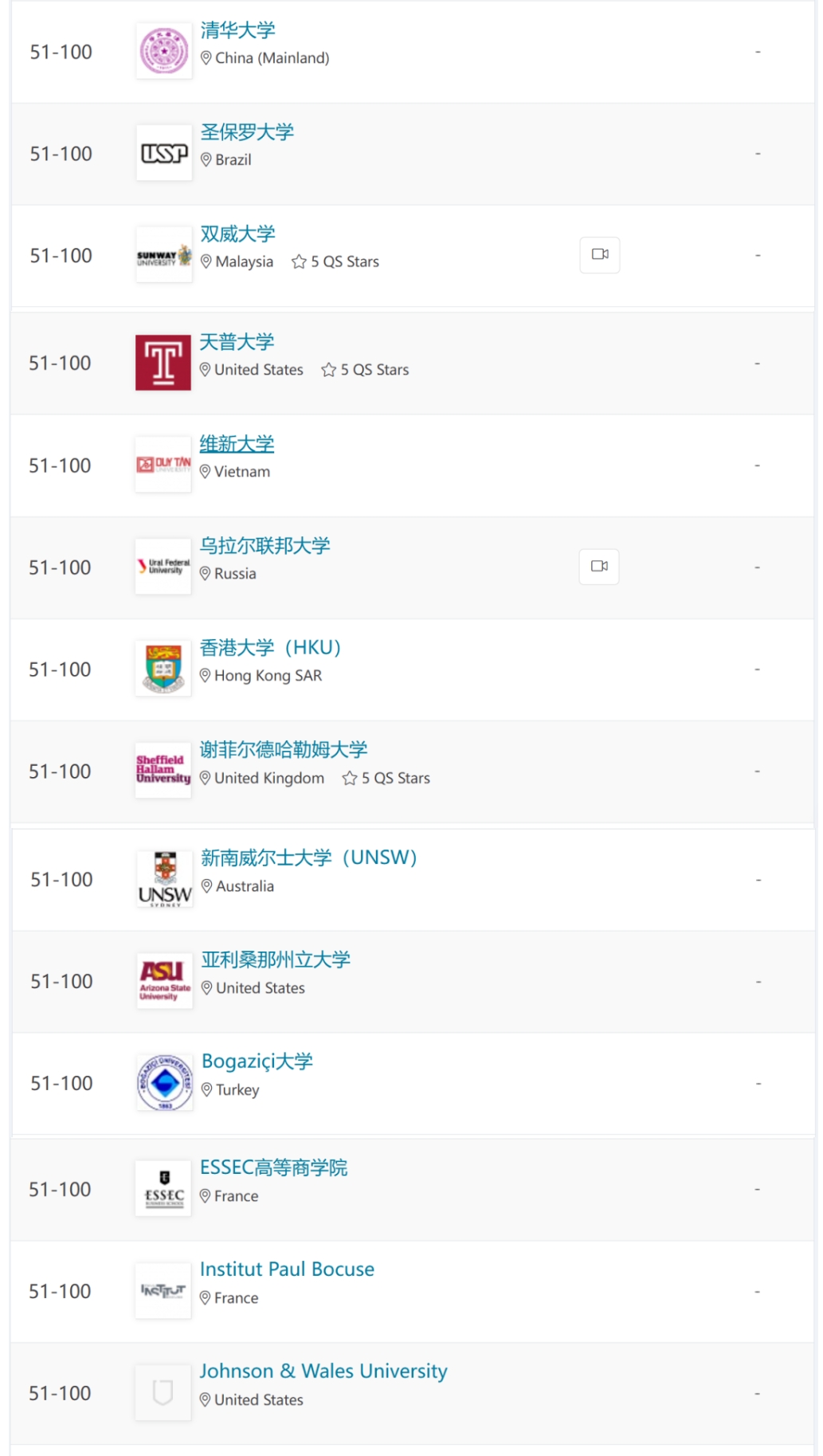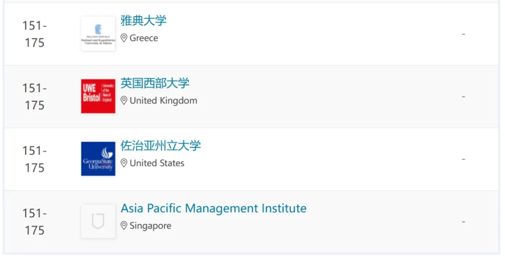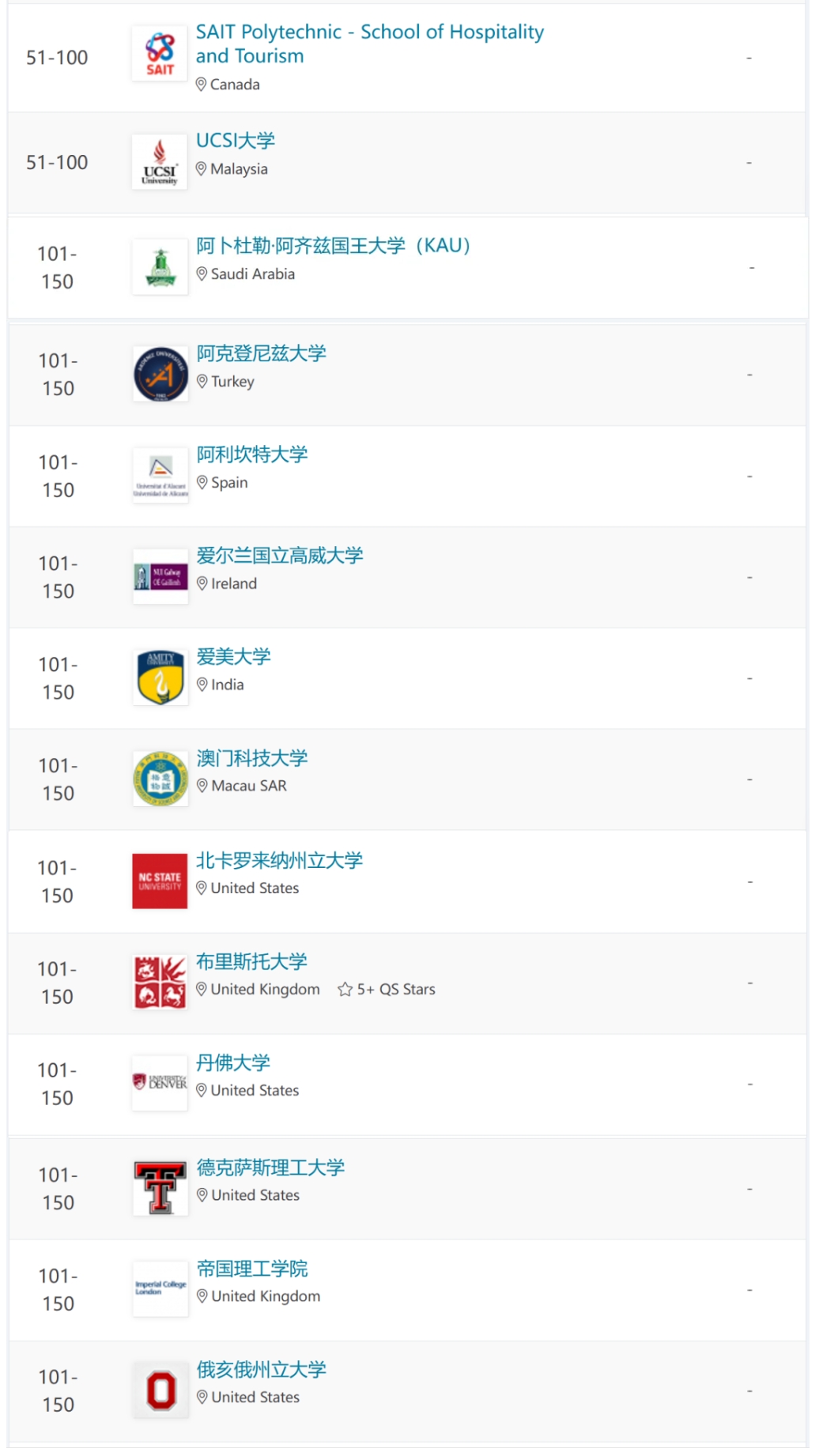 2. 这个排名只列出了全球TOP 175,全球有酒店管理类专业的院校成千上万,所以并不代表没在TOP 175的学校就不好。有些实力较强的酒店管理院院校因为规模太小或其他原因压根就没被比较,当然也不可能出现在此次排名当中